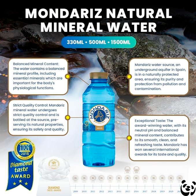 Este pack incluye 12 botellas de 1,5 litros, garantizando un suministro duradero de agua de mineralización débil de alta calidad. Mondariz es sinónimo de salud y bienestar, siendo una de las aguas más premiadas del mundo por su sabor y composición.