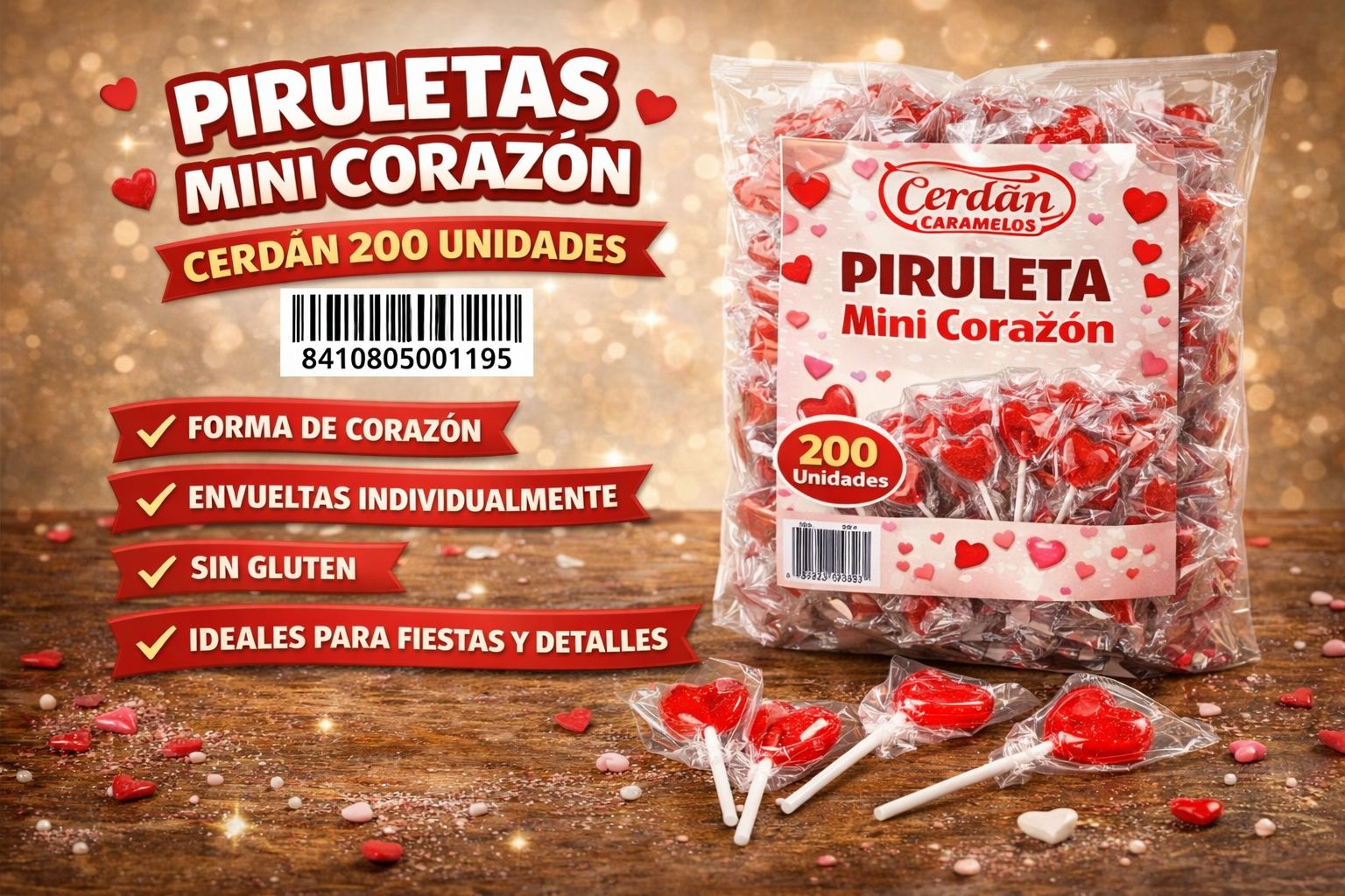 Las piruletas de corazón son mucho más que un simple caramelo. Son un detalle divertido que aporta color, sabor y alegría a cualquier celebración.