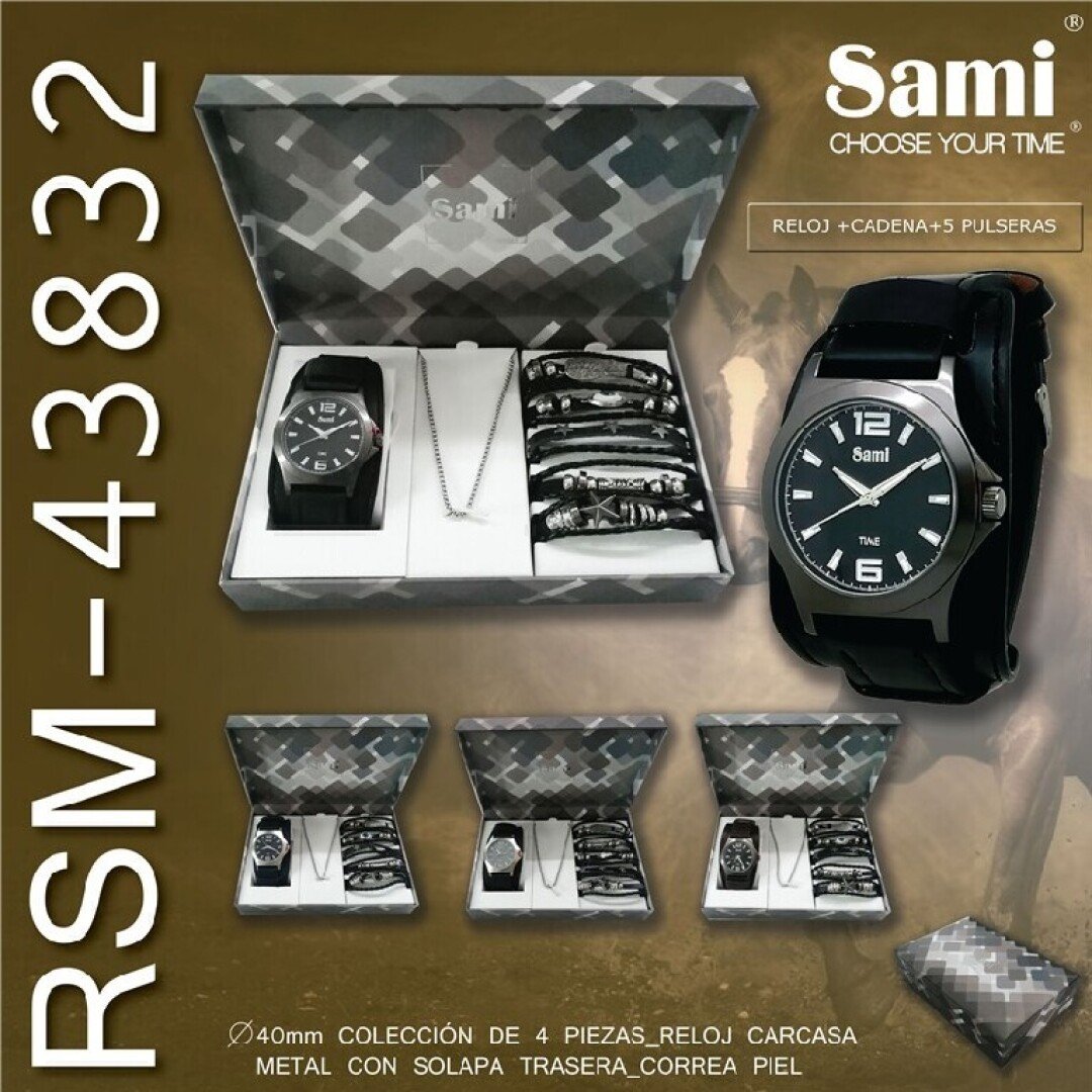 Conjunto Sami hombre reloj hip hop+5pulseras+cadena