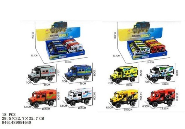 Este expositor contiene 8 camiones surtidos, con diseños variados y colores llamativos que harán las delicias de los pequeños amantes de los vehículos.