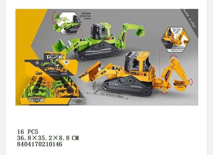 Este completo set de vehículos de construcción incluye excavadoras y bulldozers de juguete con diseño realista y múltiples funciones, ideales para estimular la imaginación y el juego creativo.