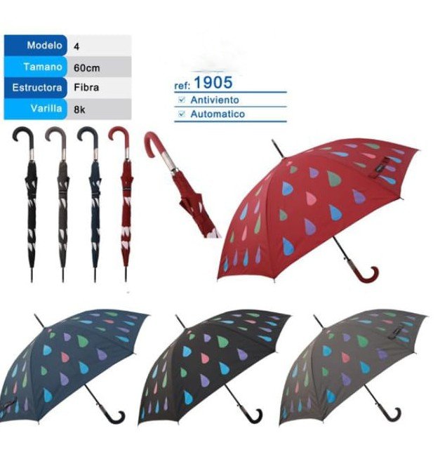 con un encantador estampado de gotas de lluvia y disponible en colores surtidos que alegran cualquier jornada nublada.