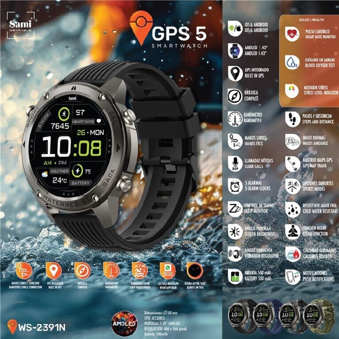 El   Smartwatch GPS-5 WS-2391N es un smartwatch moderno, resistente y funcional