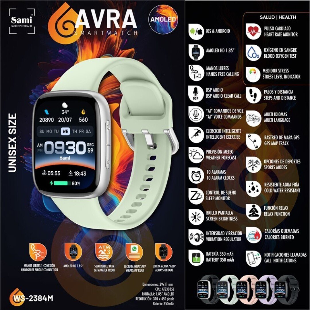 Descubre el equilibrio perfecto entre estilo y funcionalidad con el Smartwatch Sami AVRA WS-2384 menta